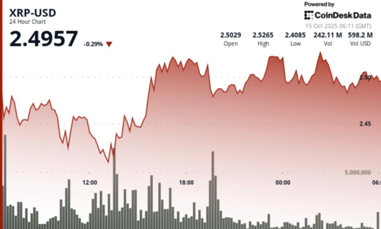 • Late-session trade saw XRP recover modestly to $2.50 as dip-buying stabilized order books.