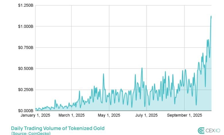 Gold-backed tokens hit a major milestone this week, topping $1 billion in daily trading volume for the first time on the back of the yellow metal’s record-breaking rally.
