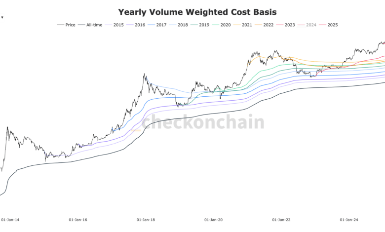 Additional key levels include $103,509, the average cost basis of 2025 investors according to Checkonchain data. This serves as an important price floor, as well as the $100,000 psychological support level that anchors market sentiment.