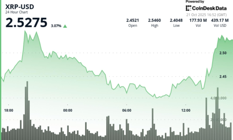 Cross-asset rotation drives fresh inflows into risk assets as XRP outperforms major altcoins, reclaiming the $2.50 handle before profit-taking sets in.