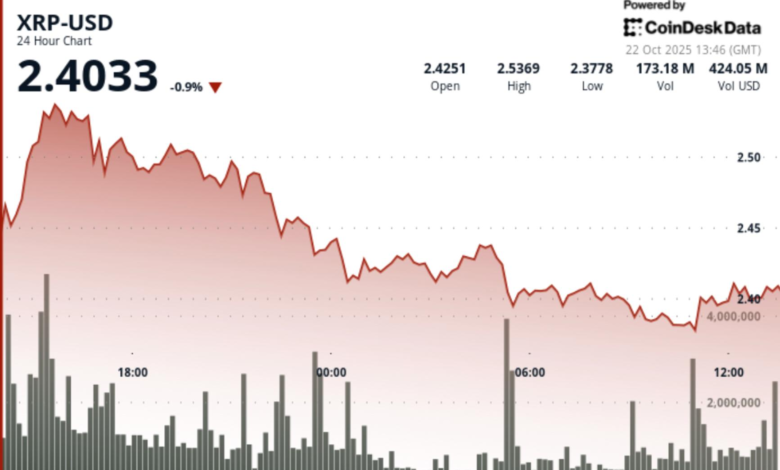 - In the final 60-minute window, XRP stabilized around $2.40–$2.41, with volume easing to 3.6 million.