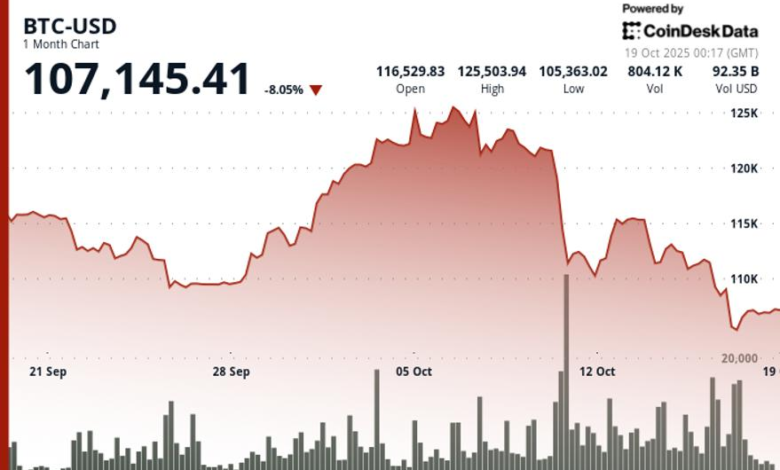 Thorn says the Oct. 10 sell-off began with high leverage slamming into thin order books, then worsened as exchange auto-deleveraging capped some market-maker shorts and thinned liquidity at the worst point. He cites roughly $19 billion of liquidations as bitcoin slid from an Oct. 6 all-time high near $126,300 to an intraday low around $107,000, with ether falling from about $4,800 to roughly $3,500 before markets steadied into the weekend.