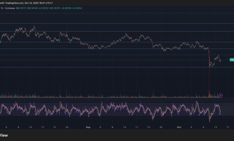 The sharp uptick in activity between 13:37 UTC and 13:46 UTC suggested strong accumulation as investors stepped in at discounted levels. Chart data indicated a clear double-bottom formation within the $0.18 range — a technical signal often associated with bullish reversals.