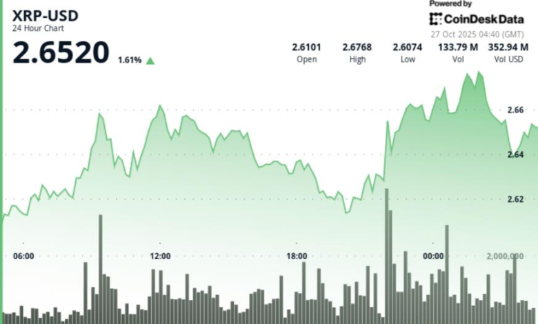 - XRP climbed from $2.60 to $2.68, clearing the $2.63 barrier and establishing new support between $2.61-$2.63.