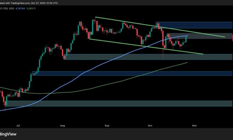 Ethereum is showing signs of strength again as it attempts to reclaim key resistance levels after a sharp early-October drop. The bounce from the lower boundary of the descending channel has brought it back toward $4,150. Momentum is building, but the market remains cautious ahead of key resistance levels.