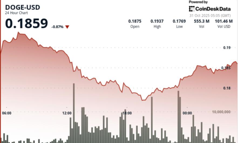 - Traders are monitoring whether DOGE can hold above the $0.1840 base and avoid a retest of the $0.1765 level that defines short-term structural integrity.