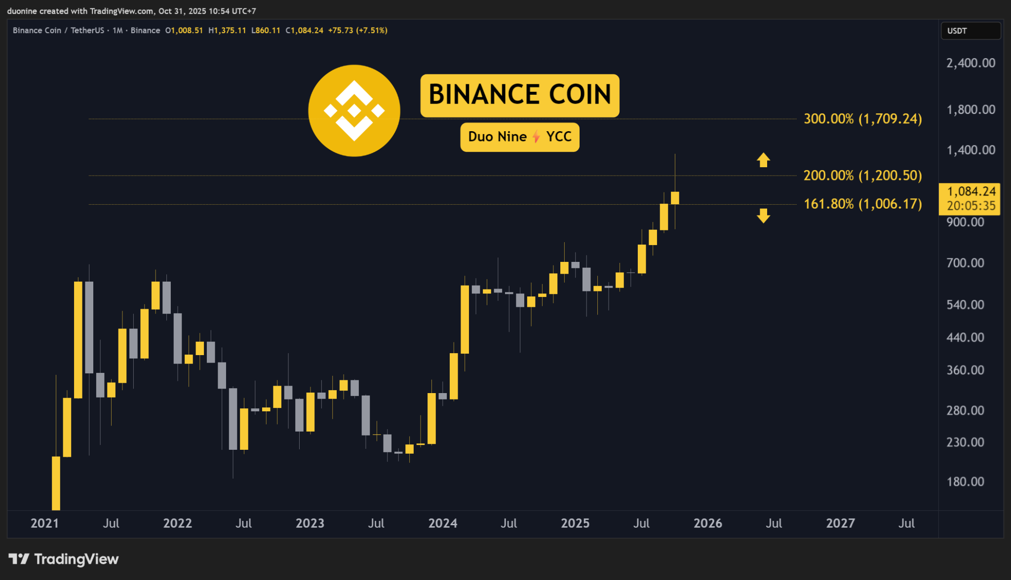 A clear breakout is needed beyond $1,200 if bulls hope to take BNB higher. A breakdown under 1,000 would be bearish and see the asset revisit $950 and $900.