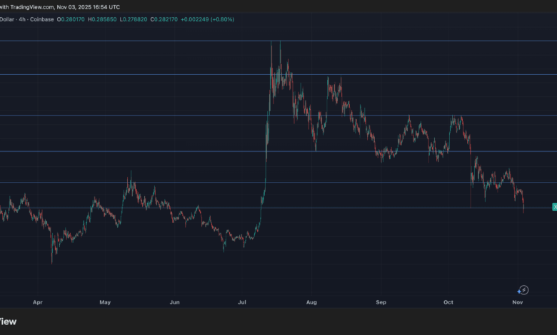 - Stabilization: Price steadying after rebound attempts from $0.277 low.