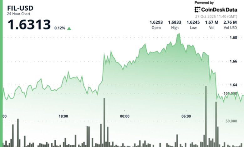 Volume surged 23% above seven-day averages, signaling institutional positioning despite FIL’s relative weakness.
